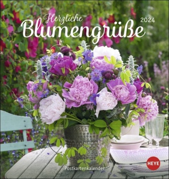 Blumengrüße Postkartenkalender 2024. Kleiner Kalender mit 12 traumhaften Fotos von Blumensträußen und Blüten. Zum Aufstellen oder Aufhängen. Blumen-Kalender 2024 mit Postkarten.